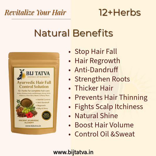 At BIJ Tatva, we believe in the power of nature and the wisdom of ancient Ayurveda. Our journey began when we realized the harmful effects of chemical-based products. Inspired by personal experience—when a doctor once said that hair regrowth was impossible—we turned to Ayurveda. Through deep research into ancient texts, we discovered potent herbal remedies that transformed not just hair but overall well-being. Today, we share these handmade, time-tested formulas with you.